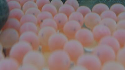 たまごには、ポツンと黒い点ができています。2年生が「発眼(はつがん)っていうんだよ」と教えてくれました。
