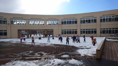 休み時間にはさっそく外に飛び出し、雪合戦をしたり、雪だるまを作ったりする子どもたちがいっぱいいました。