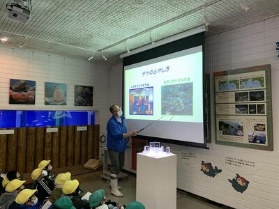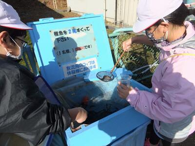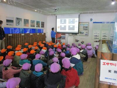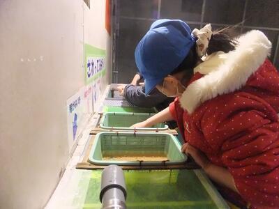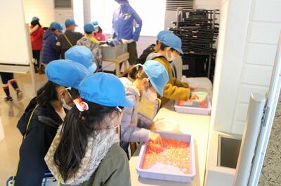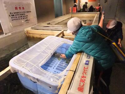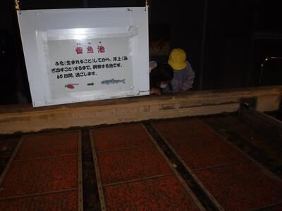 最初にふ化事業の説明を聞きました。展示棟で説明が書かれたパネルを見たり、大型水槽のサケにえさやりをしたりしました。後半、体験棟では、サクラマスの稚魚を放流したり、サケのたまごや魚に触ったりしました。最後の質問タイムまで、楽しく学習することができました。