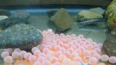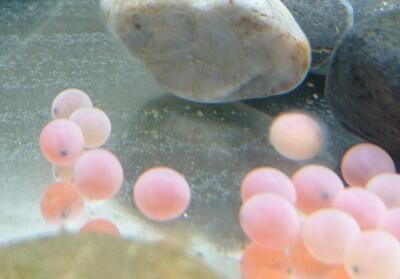 黒い眼がはっきりしてきました。もうすぐふ化でしょうか。「元気な稚魚が早く見たいなあ」