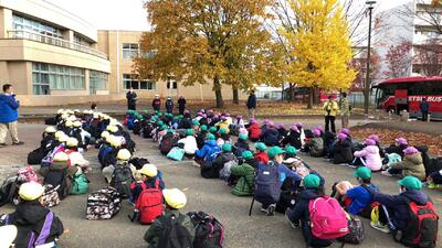 いよいよ宿泊学習に出発します。肌寒い予報ではありますが、晴天に見送られ、みんなで楽しい思い出をたくさん作ってきます。全員そろって元気に行ってきます。