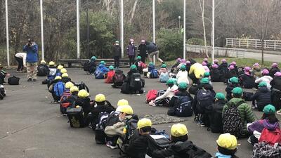 そして、いよいよ退館式。お世話になった自然の家とお別れし、たくさんの思い出を胸に帰ります。