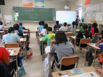 千歳市教育振興会(千教振)生活科部会の研究授業がありました。アサガオの花が咲いた後の変化に気付くという学習内容でした。しっかりと観察し、その結果からすてきな「あさがおクイズ」を作っていました。