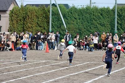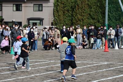 体育発表会の後半、徒競走です。ゴールまで力いっぱい走りました!
