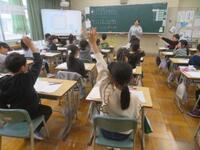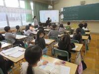 3時間目に1年生の学級で算数科の研究授業が行われました。「おおきい かず」の学習ですが、これまでは40までの数については学んできましたが、この単元ではもっと大きな数について、数え方や唱え方、位の意味などを身に付けていきます。