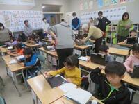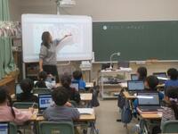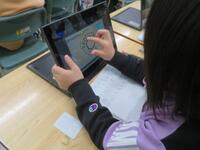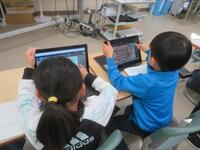 今日は、数の多いものの数え方の工夫についてタブレットを操作して、自分で印をつけたり、10のまとまりごとに囲んだりしながら正確に数える方法を考えていました。1年生でも、慣れるとこんなにタブレットを使うことができたり、みんなの考えを伝え合うことができたりすることに驚きました。