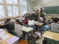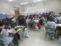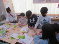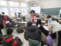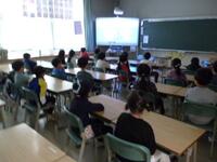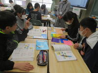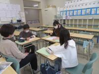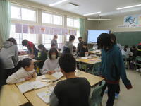 2年生が3年生の教室に行き、どのように学習をしているのか見学をしていました。3年生は理科の「じしゃく」の学習で、実験する前に予想をたて、グループで協力して調べる活動をしていました。周りで見ている2年生に「やってみていいよ」と声をかけて、磁石とクリップをつけさせてくれていました。2年生はまだ理科や社会の学習がないので、とても興味深そうに見ていました。