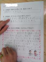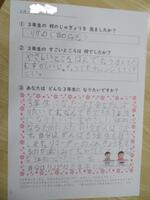 見学後、教室に戻った2年生は、3年生の学習の様子を見た感想やどんな3年生になりたいかを紙に書いていました。「はんできょう力していた」「やさしく声をかけてくれた」「むずかしい勉強でもチャレンジしていた」などの感想がたくさん書かれていました。また、「3年生になったら筆算をがんばりたい」「社会・理科・総合・毛筆が楽しみ」「1・2年生にやさしくできる3年生になりたい」などと目標が書かれていました。1学年上がることへの期待の気持ちがたくさんあふれています。
