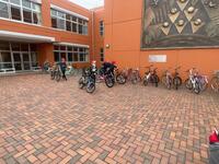 5,6年生は自転車の乗り方を学習しました。普段は自転車に乗ったままわたってしまうこともある交差点も、今日は降りて渡りました。普段から交差点では一度降りる意識をもつことがとても大切です。交通安全教室で学んだことを日常的にできるよう指導しました。