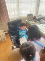 質問会の後は校長の椅子に座ってしばし「〇〇校長先生」を堪能しました。最後にシールをもらって「失礼しました」と言って教室に帰っていきました。ちょっとしたことですか、この学習を通して子どもたちは学校での生活を学んでいきます。