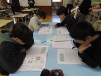 10月21日(水)の3校時に小学校5・6年生と中学校1年生の国語科の交流授業を実施しました。「竹取物語の世界に親しもう」という学習課題で、小学生も中学生も交じりあって「音読中心グループ」と、「おおまかなあらすじ」グループの二つに分かれて竹取物語を楽しみました。