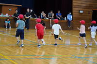 新体力テストで、小学生の「ソフトボール投げ」と「シャトルラン」の記録をとるために全校で合同体育を実施しました。ソフトボール投げの見本を中学生が見せてから小学生が実際に記録をとります。また、ボール投げの記録を図ったり、ボールを渡してあげたりと中学生がお手伝いをしてくれました。体育館のなかではシャトルランの記録をとる小学生に伴走してあげたりと中学生が大活躍でした。おかげで小学生もたくさん頑張りました。