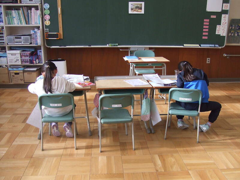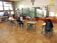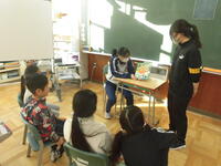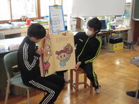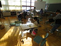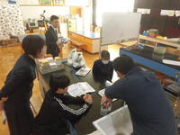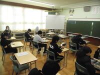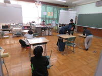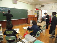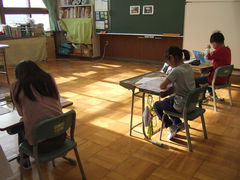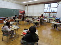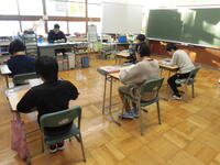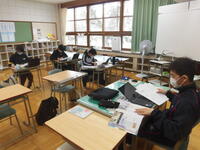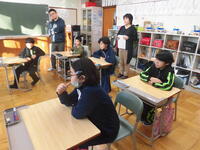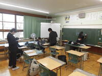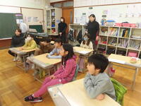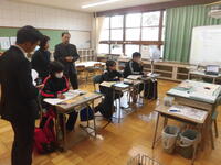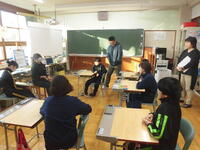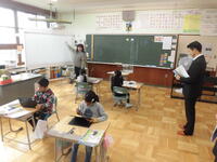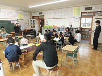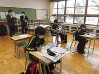 小学校では1・2年生が算数で、学年によって違う学習内容を同時進行で行う複式の授業を行いました。3・4年生、5・6年生は道徳の時間で、2つの学年が一緒に授業に取り組みました。中学校では1年生が数学、2年生が英語、3年生が国語を行い、少人数ながら、話し合いをしたり、発表したりして、真剣に課題に取り組んでいました。