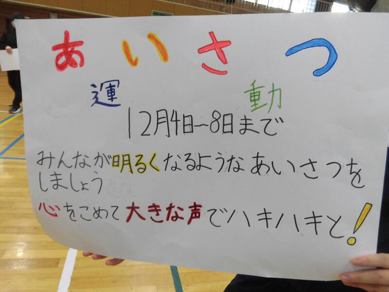 本校児童会から「来週4日からあいさつ運動を始めます」との話がありました。