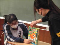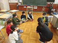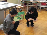 聴き手の小学生は、絵本の内容や物語に食い入るように聴いています。集中して聴いている表れです。また、中学生が発する質問や感想に対して、主体的に考えるなど、自分事として聴いています。