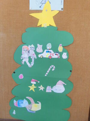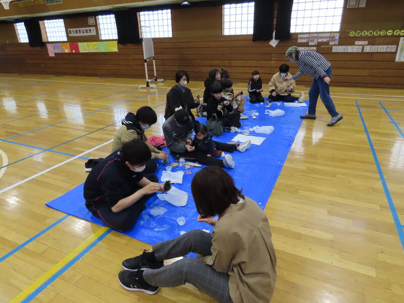 講師には、いつも学校開放でお世話になっている管理指導員の小野さんをお招きし、グループに分かれて、お母さんと一緒にツリーづくりを楽しみました。材料は同じなのに、一人一人みんな違った個性的なツリーができあがり、見ているとクリスマスが待ち遠しくなります。