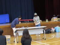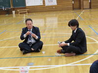 昨日、千歳市教育委員会の職員が1日学校の業務を体験しました。「小中併置校、小規模校ならではの体験を!」ということで、小学生とは図書室で本の読み聞かせ、調理実習で6年生のお味噌汁づくりの補助、中休みのサッカー、複式授業の見学を、中学生とはスピーキングテストの練習相手、保健体育のバレーボール練習試合相手、ICTを活用した授業見学、卓球部の練習参加と、1日盛りだくさんの研修でした。子供たちは一緒に過ごすことができたことを、とても喜んでいました。