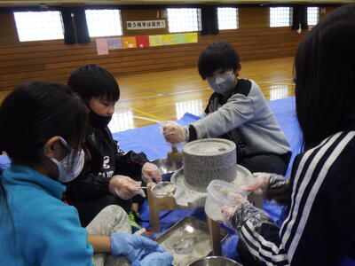 小学校では、総合的な学習の時間で3年ぶりにそば作りをしています。
