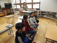 中学生は、小学生にも伝わりやすいようにゆっくりと絵本の言葉を読んでくれます。小学生は、その絵本の世界に入り込むように、静かに聴き入ります。読み終わったときに、自然と出てくる拍手は、中学生にとってもうれしいものですね。