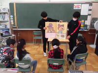 今日は「読み聞かせ」最終日となりました。中学生は3グループに分かれて、小学校の3つの教室をローテーションで回ってくれています。グループで同じ本を読みますが、小学校の低学年・中学年・高学年に合わせて声の大きさや読み方、スピードを変えてよんでくれています。今日も中学生は「これどう思う?」「自分は・・・思うけど、みんなはどう?」「感想を教えて」など、小学生に「対話」をしながら、「読み聞かせ」を行っています。