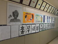 今回、選ばれた作品が市民ギャラリーに展示されましたが、それ以外でも優れた作品が、いつも小学生の廊下に掲示・展示されています。どの作品も児童らの授業に対する意欲の高さ、丁寧な仕上がりになっております。