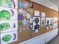 先日、市民ギャラリーに展示していました本校児童生徒の作品を、現在、本校体育館前の廊下にて掲示しております。どれも素晴らしい作品ばかりです。