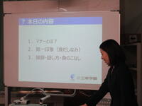 今年度も三幸学園から講師を招き、中学生を対象に「マナー講座」を行いました。今回は、高校入試を見据え、面接に向けたマナーが中心。身だしなみや挨拶・話し方・身のこなし方など、実践を交えながら教えていただきました。3年生はもちろん、1,2年生も真剣な表情で臨み、多くのことを学びました。今後に生かしていけそうです。