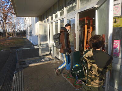 そのような中、児童生徒たちは今日も元気に笑顔で登校してきました。今朝お出迎えが遅れた際に、いつも小学校の玄関を開けてくれる児童が、中学校の玄関を開けてくれました。この児童は、いつも小学校の玄関を開けてくれる、心優しい児童です。そのような思いやりある行動に、朝から心が温まります。いつもありがとうございます。