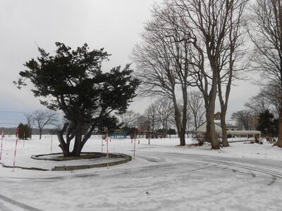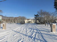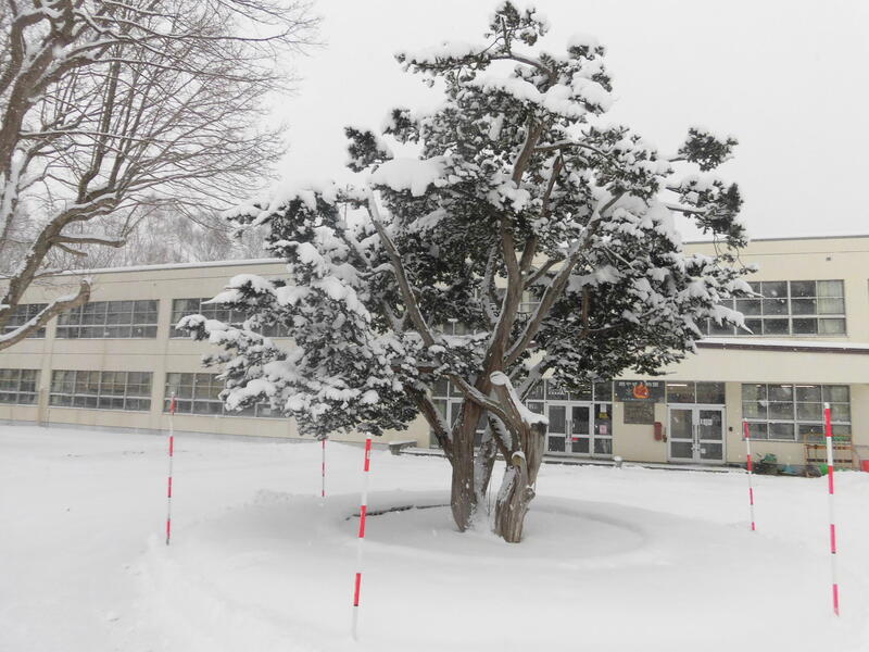 およそ20センチぐらいは積もったでしょうか・・・。今朝は朝4時半ごろから除雪車が校舎前や駐車場も含めて除雪してくれました。また、校地前の道路や歩道等についても除雪してくれました。朝早くから、本校のために除雪してくれております業者の方々に感謝です。