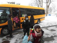 除雪のおかげで、本日もスクールバスが安全に児童生徒たちを乗せて、安全に登校できました。ありがとうございます。また、スクールバスの運転手さんや誘導員さんにも、安全に運行・乗車させてもらっていることに対しても感謝したいものです。