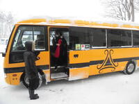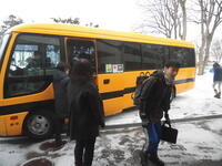 児童生徒たちは、運転手さんや安全誘導員の方に対して「おはようございます」「ありがとうございました」と元気よく挨拶ができていました。千歳市では「スクールバス」の運行に関しまして、安全誘導員の方に乗車し、児童生徒たちが安心安全に利用できるようにしてくれております。大変ありがたいことと思います。児童生徒たちも、自ら安全に乗降車できるようにしてほしいと思います。
