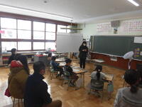 小学校1年生から4年生は、千歳警察署の方から、災害についてのお話と、SNSやケームを通したトラブル・被害などについてのお話を聞きました。ネットを使った犯罪を例を上げながらお話してくれ、みんな熱心に、メモをとりながら話を聞いていました。スマートフォンを持っているお子さんもいましたが、お家でルールを決めながら使っていくことが大切であることを教えていただきました。