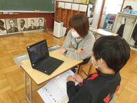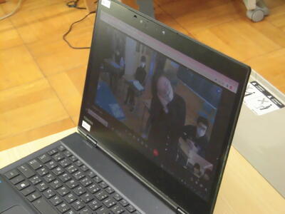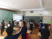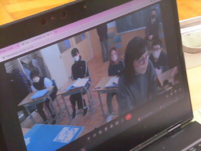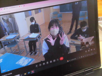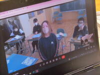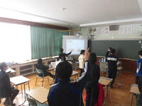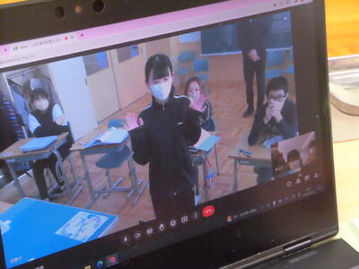 本日、4時間目に厚田学園との交流授業が行われました。本校小学6年生と本校中学校英語教諭が、厚田学園6年生とALT,厚田学園の中学校英語教諭とがタブレットにてつながりました。自己紹介や、お互いの住んでいる地域について、交流を深めました。