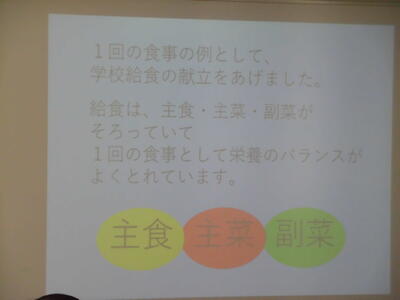 本日、市内小学校の栄養教諭が来校し、本校中学生向けに食育の授業を行いました。