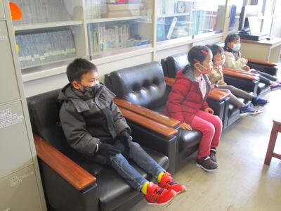 図書館司書の武田さんに、本の借り方を教わりました。駒里小中学校には図書室がないので、小学校は廊下に棚を置いて本を並べています。中学校は、特別活動室が図書室代わりになっています。本が大好きな子ども達は、たくさんの本を借りて読んでいます。月2回移動図書館の「ブッくん」が来ますので、とても楽しみにしています。たくさんの本を読んで、心豊かな子ども達に成長してほしいです。