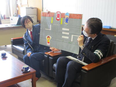 このあと、地区ごとに下校する集団下校訓練をしました。「110番の家」を確認し、ご挨拶をしてきました。