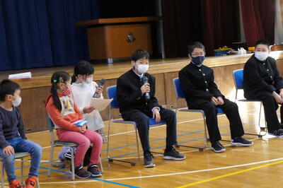 小中合同で、新1年生と新職員を迎え入れる対面式を行っています。児童会生徒会が中心となって、楽しい企画を考えてくれています。毎年心温まる素敵な会となっています。