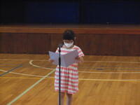 4月7日から新学期がスタートしてから73日間の学校生活を終え、明日から夏休みとなります。夏休みを前に、児童生徒会主催の「バク集会」が行われました。校歌を全校児童生徒で歌い、新学期スタートから今日までの学習や生活を振り返るとともに、今後の決意を述べました。