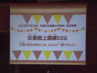 児童生徒たちは、北海道胆振東部地震のことや兵庫県南部地震における「震度7」の映像を見て、実際に起きたことをイメージしながら、「DIG」を行いました。