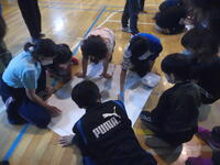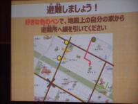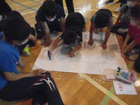 千歳市防災マスターリーダー会の方による「DIG」を行いました。災害が起きたことを想定して、大きな地図に様々な情報を書き込みました。