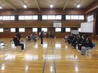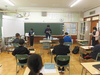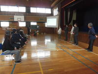 小学校1年生から4年生は、千歳警察署の方から、災害についてのお話と、SNSやケームを通したトラブル・被害などについてのお話を聞きました。ネットを使った犯罪を例を上げながらお話してくれ、みんな熱心に、メモをとりながら話を聞いていました。スマートフォンを持っているお子さんもいましたが、お家でルールを決めながら使っていくことが大切であることを教えていただきました。