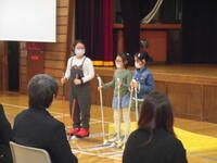 【小学生による学校紹介】①休み時間の様子や②歩くスキーの授業、③学校祭を紹介しました。