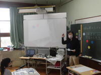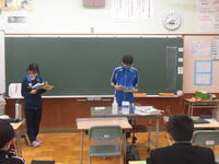 【中学生による学校紹介】クイズ形式で、本校職員の問題が出題されました。