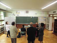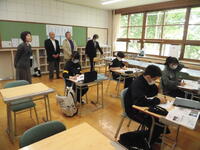 学校運営協議会の方々は、教頭先生の案内により中学校の授業を見て、授業に関することやICT活用等についての質問やご意見をいただくことができました。