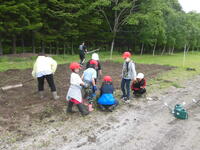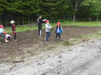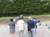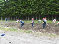 小学生は、「そばづくり」の最初の作業であります「畑の整地」と「種まき」を行っている様子を見ていただきました。小中学校ともに「農園活動」でも大変お世話になっている方々でもあり、今後の農作業の進め方や害虫駆除等も教えていただきました。
