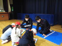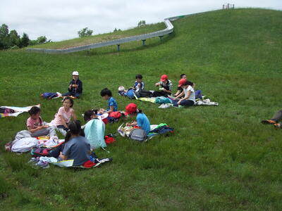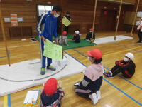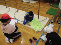 その後、各学年ごとにお弁当を食べ、午後は低学年と高学年に分かれてレクをしました。食べながら話しをしたり、協力し合ってゲームをしたりと、最初は互いにぎこちないようすでしたが、だんだんと仲良くなっていきました。