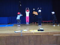 外で行った後、残りの種目は体育館にて行いました。異学年交流が常に可能な本校は、上級生(中学生)が下級生(小学生)の良きお手本となってくれます。とても頼もしい姿であり、そのことから”思いやり”の心が育まれることはうれしいことです。