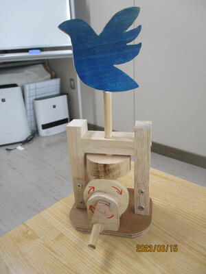 切り抜き、磨き、組み立てを経て動くおもちゃが完成しました。