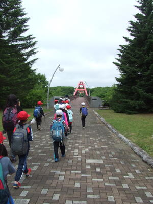 今日は、延期になっていた遠足に行きました。向陽台方面を歩きました。片道4kmほどです。児童会の子ども達が中心になって、全員遊びを盛り上げてくれました。