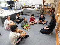 今日は夏休み前の本の貸し出しも含めての読み聞かせでした。また、ある絵本から北海道の地名や行事、新聞記事等も活用し、児童たちの興味関心を引き出してくれました。何よりも、本校図書館司書さんの事前準備から、児童らが目を輝かせて絵本を見て、耳を澄まして聴いている姿を見ると、とてもありがたいことです。